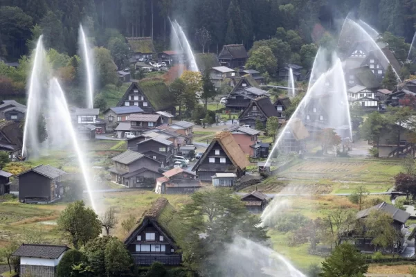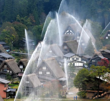 Vào tháng 10 hằng năm, cuộc diễn tập chữa cháy sử dụng vòi rồng được tổ chức tại làng Gassho-zukuri của Shirakawa-go, Di sản Thế giới (Làng Shirakawa, Tỉnh Gifu). Rút kinh nghiệm từ vụ cháy xảy ra ở làng vào tháng 2 năm đó, đội huấn luyện đã lồng ghép và bổ sung nội dung đào tạo mới vào chương trình huấn luyện. Cũng ở gần ngôi làng này 3 năm về trước, một vụ hỏa hoạn đã xảy ra. Cho đến hiện tại dân làng vẫn đang tiếp tục tìm cách để bảo vệ Di sản Thế giới.